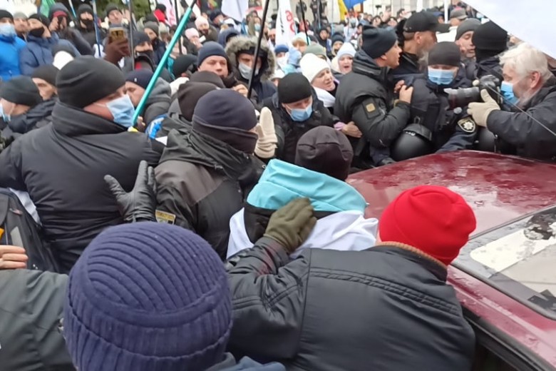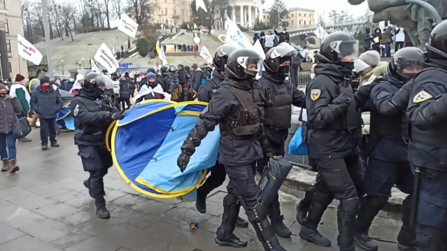15 декабря в Киеве на Майдане, где произошли стычки митингующих предпринимателей с полицией, уже взрывают шумовые гранаты.