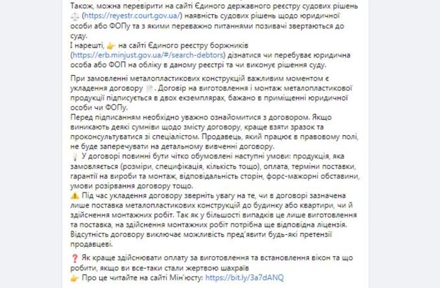 В министерстве предупредили, что украинцев могут обмануть при покупке металлопластиковых конструкций, даже если они имеют на руках свой экземпляр договора и квитанцию, подтверждающую оплату товаров и услуг.