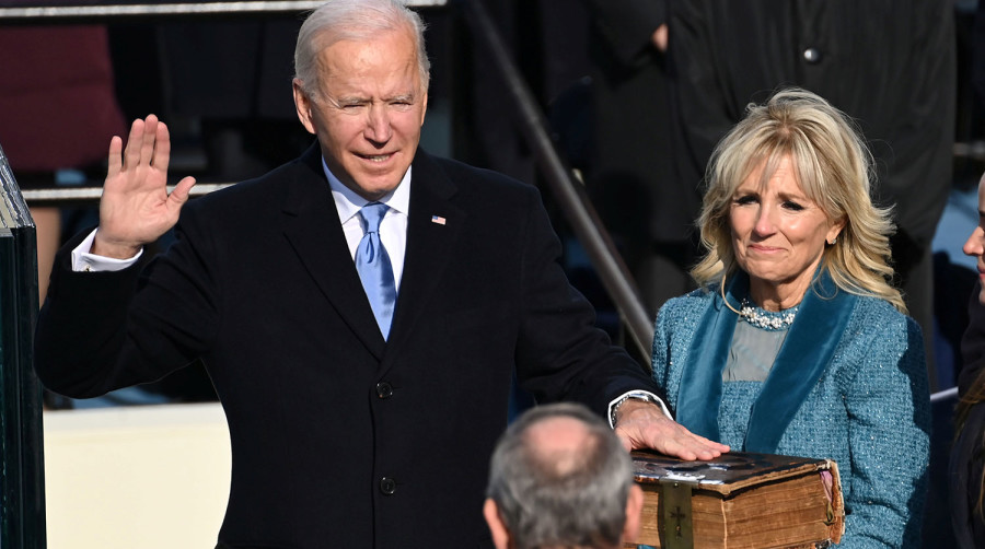 Байден использовал ту же семейную Библию, которую он использовал дважды, когда приходил к присяге как вице-президент, и семь раз как сенатор от Делавэра.
