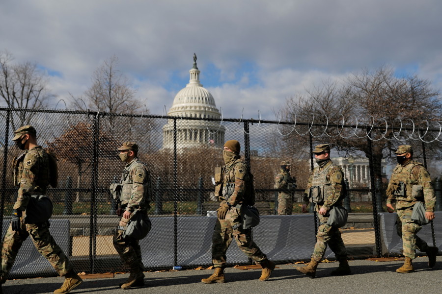 В день инаугурации в Вашингтоне была размещена 21 тысяча солдат Национальной гвардии, многие из которых вооружены. Военные построили вокруг Капитолия "зеленую зону", где возвели забор из колючей проволоки.