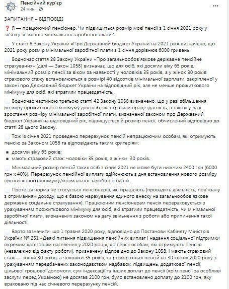 Работающий пенсионер попросил консультантов Пенсионного фонда объяснить, повысится ли его размер пенсии с 1 января 2021 в связи с изменением минимальной заработной платы в Украине.