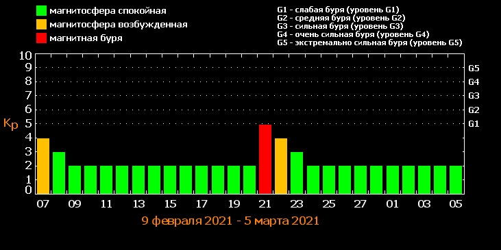 Магнитная буря (магнитные возбуждения) средней интенсивности накроет Землю в воскресенье, 7 февраля, около 6:00 утра. К обеду ситуация немного успокоится и напряжение начнет спадать.