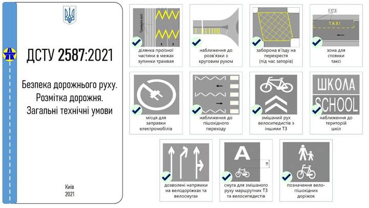 Новый стандарт "Безопасность дорожного движения. Разметка дорожная. Общие технические условия” разработан специалистами ГП "ГосдорНИИ". Таким образом эта разметка заменит действующую ДСТУ 2010 года в соответствии с приказом Национального органа стандартизации.