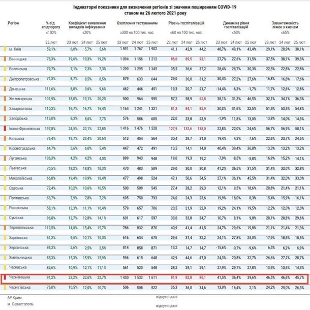 В последний день рабочей недели, 26 февраля, МОЗ Украины обновил карту с карантинными зонами. Согласно обновленным данным, в "красную" зону попали Ивано-Франковская и Черновицкая области.