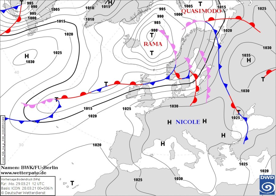 По ее прогнозу, во вторник, 30 марта, погоду Украины будет определять антициклон Nikole, который вместе с восточным антициклоном вытеснит влажный одесский циклон дальше в воды Черного моря.