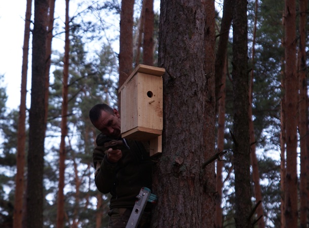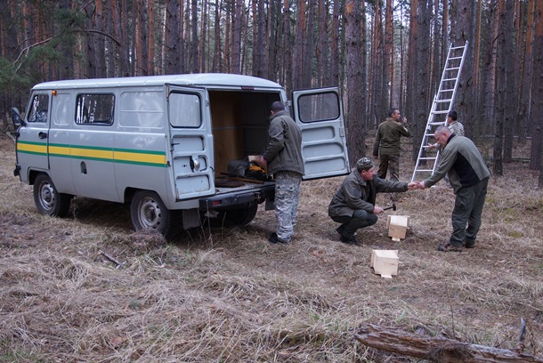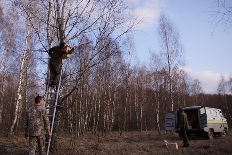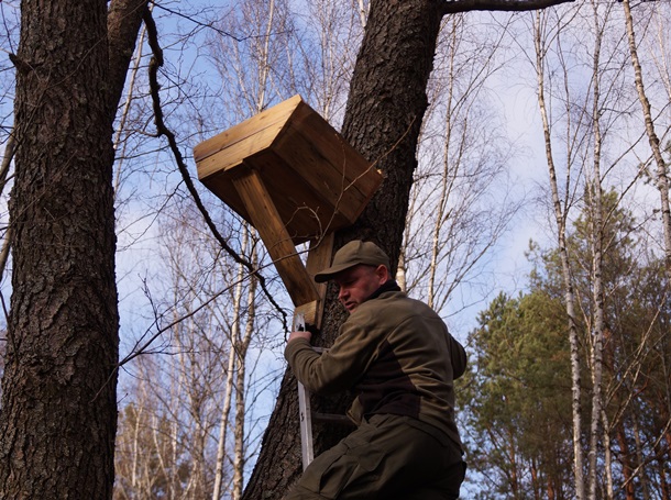 Егеря из отдела воспроизводства и сохранения животного мира вместе с научными сотрудниками Чернобыльского заповедника установили в разных местах заповедной территории деревянные гнездовые платформы и скворечники.