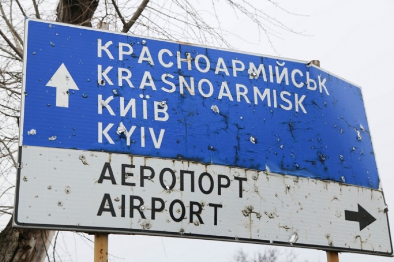 Во временно неподконтрольном украинскому правительству Донецке установили указатель в сторону Киева. Об этом сообщают местные жители в социальных сетях.