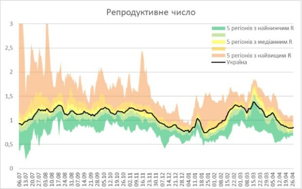 В зеленой зоне пока нет областей. Так, 28 апреля, зафиксировано 9 590 новых случаев коронавируса, умерли 441 человек. Заболели в том числе 451 ребенок и 217 медработников.