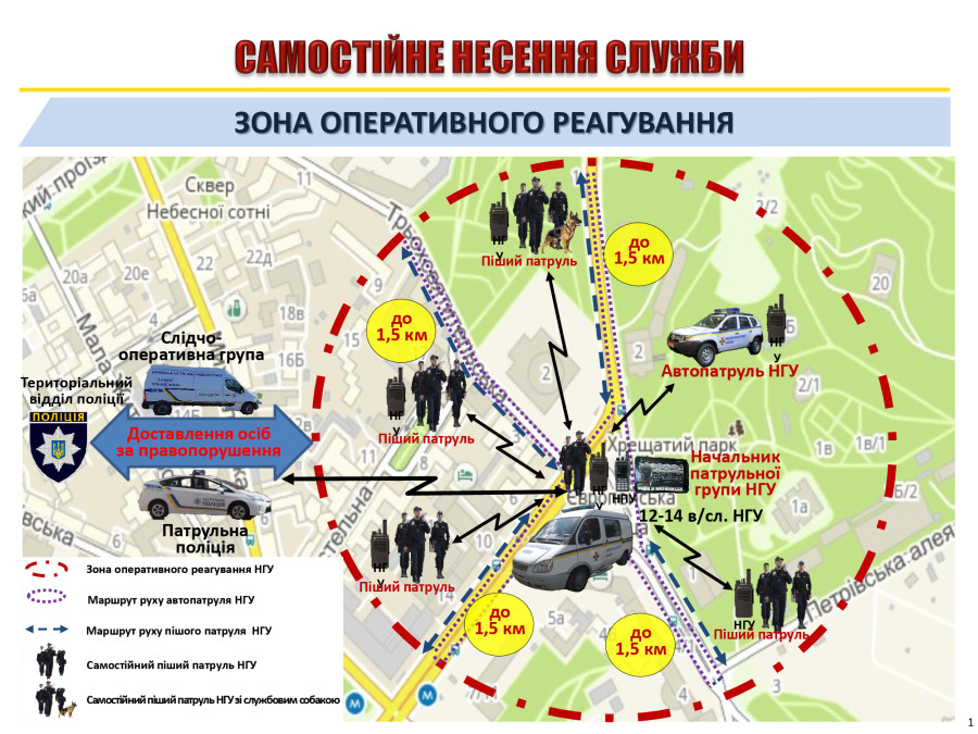 Как отметил первый заместитель министра внутренних дел Сергей Яровой, чтобы обеспечить правовую возможность патрулирования были созданы совместные группы Нацполиции и Нацгвардии - для наработки нормативно-правовых актов, алгоритма действий и порядка взаимодействия с целью самостоятельного несения службы военнослужащими НГУ.