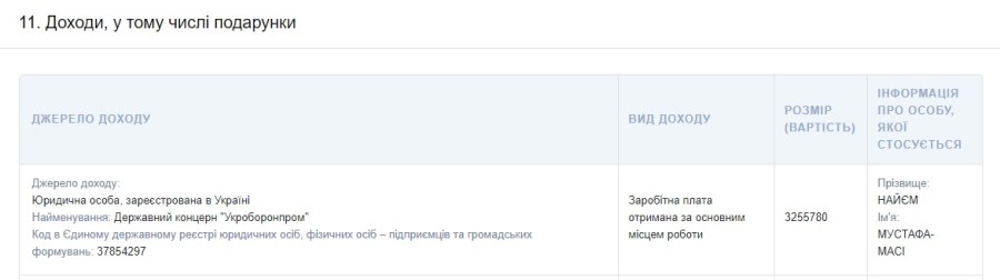 Бывший народный депутат Мустафа Найем, который недавно покинул должность заместителя генерального директора "Укроборонпрома", за последние четыре месяца работы в государственном концерне получил более 3,2 миллиона гривен зарплаты.