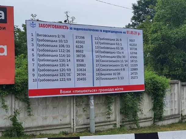 В городе Стрый на Львовщине сотрудники местного водоканала обнародовали на рекламных бордах адреса горожан, которые задолжали за воду.