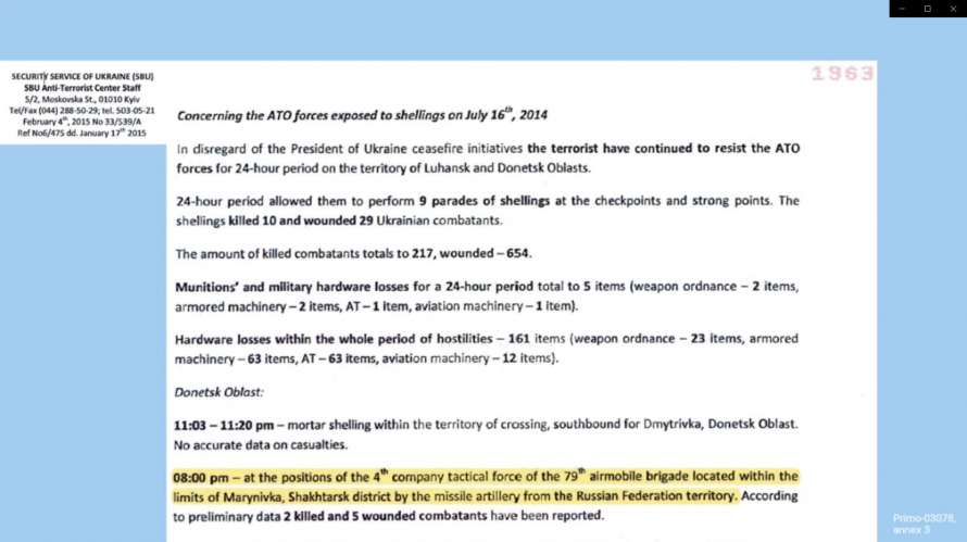 Он уточнил, что в качестве подтверждения показано донесение СБУ по событиям на фронте накануне гибели МН17 и общая карта со всеми случаями обстрелов Россией Украины», - подчеркнул эксперт.