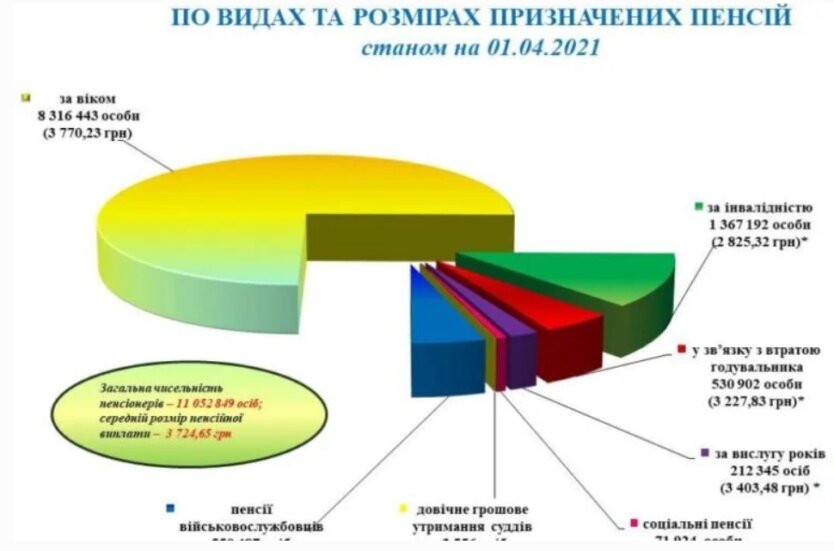 По состоянию на 1 апреля 2021 средняя пенсия в Украине составила 3724 гривен, что на 217 гривен больше, чем в прошлом году.