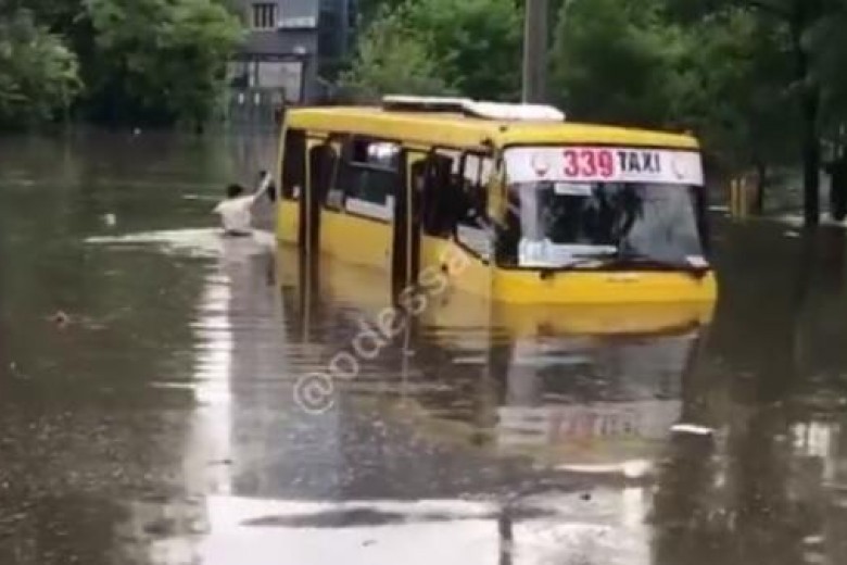 В Одессе сильнейший ливень спровоцировал страшный потоп. На одной из дорог города даже утонула полная пассажиров маршрутка.