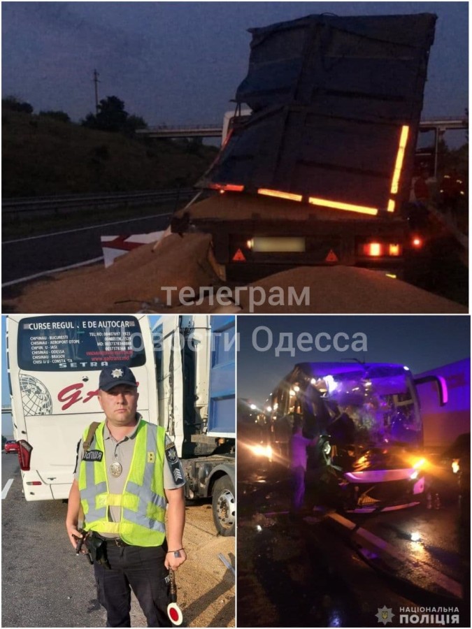 Возле пгт Любашевка Подольского района Одесской области столкнулись рейсовый автобус, ехавший из Молдовы, и зерновоза МАН.