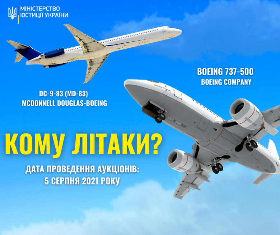 "Вашему вниманию два восстановленных на продажу арестованных пассажирских самолета Boeing" — сообщает Минюст Украины в Facebook.