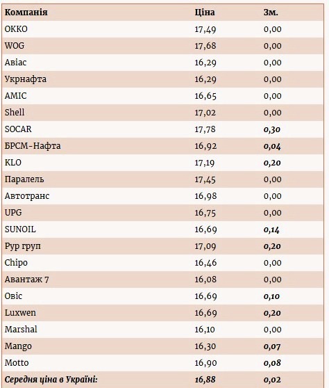 В Украине наблюдается очередное повышение средней цены сжиженного газа в сетях АЗС. Цена вновь побила рекорд - 16,88 гривен за литр. Максимальная цена за литр автогаза составляет 17,78 гривен.