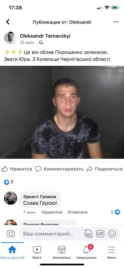 Позже в социальных сетях пользователи сообщили, что парня, облившего Порошенко зеленкой зовут Юрий. Он родом из Козельца Черниговской области.
