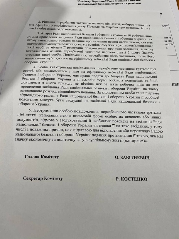 "Закон про олигархов 5599 будут переголосовывать. Вот надо было так спешить и гнать по беспределу вчера, чтобы сегодня уже начинать его судорожно исправлять! 100500 раз говорили, что там есть юридические ошибки. Теперь нужно ещё одно голосование в Раде (по ст.131) чтобы исправить юридическую коллизию. Иначе не подпишут", - написал он в телеграм.