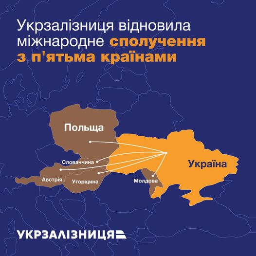 В октябре Укрзализныця возобновила международное сообщение с пятью европейскими странами: Словакией, Венгрией, Австрией, Молдовой и Польшей.