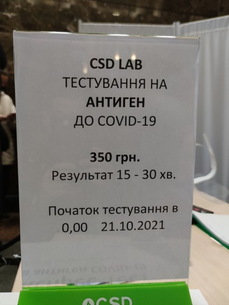 Так, тестирование на антиген стоит 350 гривен. Результаты теста нужно ждать 15-30 минут.