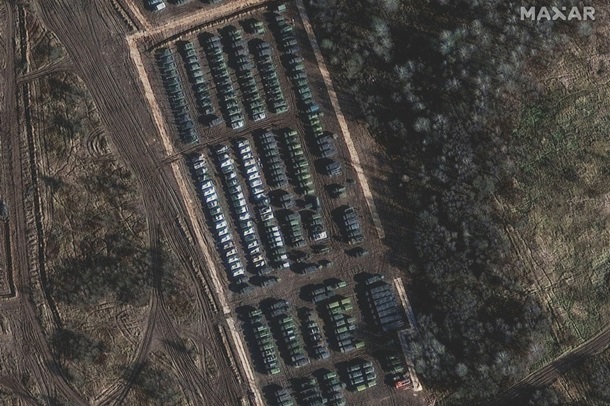 "Новые изображения, сделанные Maxar Technologies и переданные POLITICO, показывают скопление бронетанковых подразделений, танков и самоходной артиллерии вместе с наземными войсками, которые сосредотачиваются у российского города Ельня, недалеко от границы с Беларусью", - отмечается в публикации.