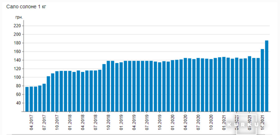 Значительное подорожание соленого сала произошло еще в октябре, когда стоимость выросла на 20 грн/кг или 13%. С октября по ноябрь цена выросла еще на 20 грн/кг или 11%, отмечает издание.