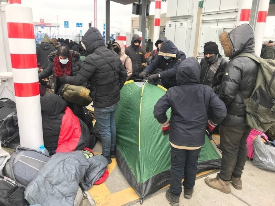 Пытаясь согреться, мигранты начали разводить костры в непосредственной близости к КПП.