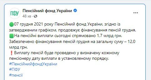 Только во вторник, 7 декабря, пенсии профинансировали на 1,7 млрд гривен.