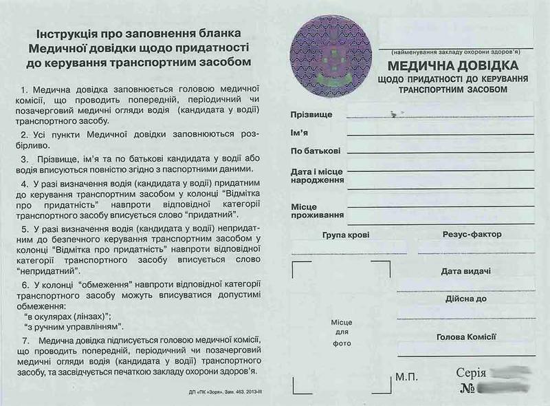 Украинцам для поступления в автошколу и сдаче занятий по вождению необходимо оформить медицинскую справку по форме 083/о.