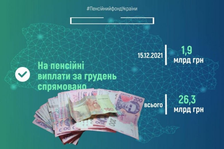 На пенсионные выплаты сегодня направили еще 1,9 миллиарда. Таким образом. обеспечено финансирование пенсий декабря на общую сумму – 26,3 миллиардов гривен.
