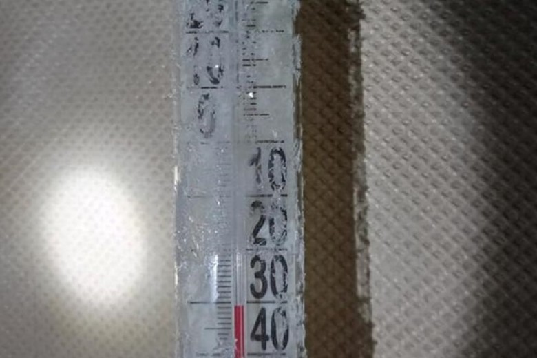 На фотографии видно, что столбик термометра опустился ниже 30 градусов мороза.