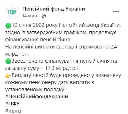 10 января Пенсионный фонд Украины, согласно утвержденному графику, продолжает финансирование пенсий в первом месяце 2022 года.
