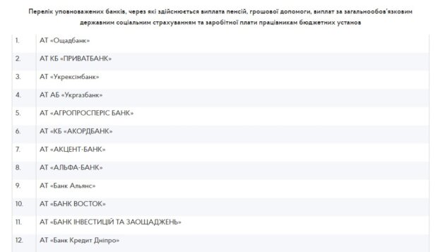Министерство финансов Украины обновило с 1 января список банков, которые могут выплачивать зарплату работникам бюджетных учреждений, пенсии и пособия.