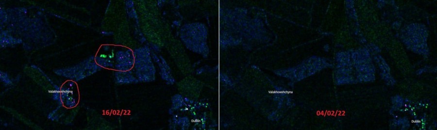 Обнаружены новые точки концентрации российской техники. Теперь данные спутникового наблюдения регистрируют скопление техники в Брагинском районе около деревни Волоховщина.