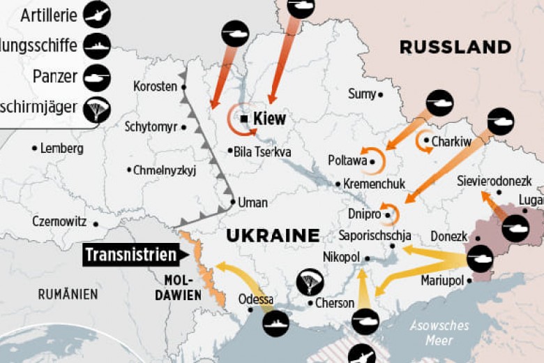 Неназванный чиновник сообщил Newsweek, что вторжение будет включать в себя не только наступление с неподконтрольной территории Донбасса, куда после признания "ДНР" и "ЛНР" были отправлены дополнительные российские подразделения, но и крупное наступление на Киев от северной границы с Беларусью, где российские войска недавно провели совместные учения со своим союзником.