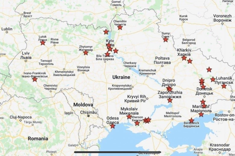 В Сети обнародована карта обстрелов украинской территории армией РФ. В первую очередь под удар попадают военные и стратегические объекты.