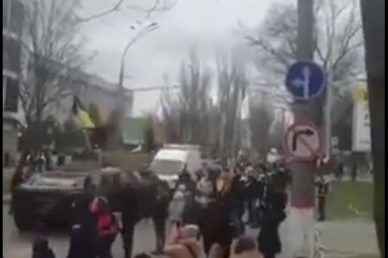 В Херсоне протестующие отняли у русни БТР.