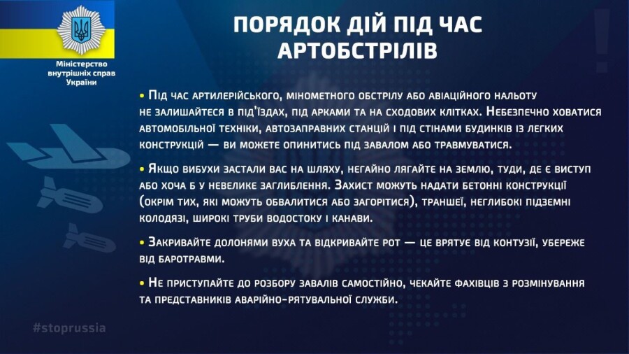 Начало обстрела предвещают отдаленные звуки выстрелов, грохот и вспышки пуска ракет. Если вы услышали свист снаряда (шуршание), а через 2-3 секунды - взрыв, сразу падайте на землю.