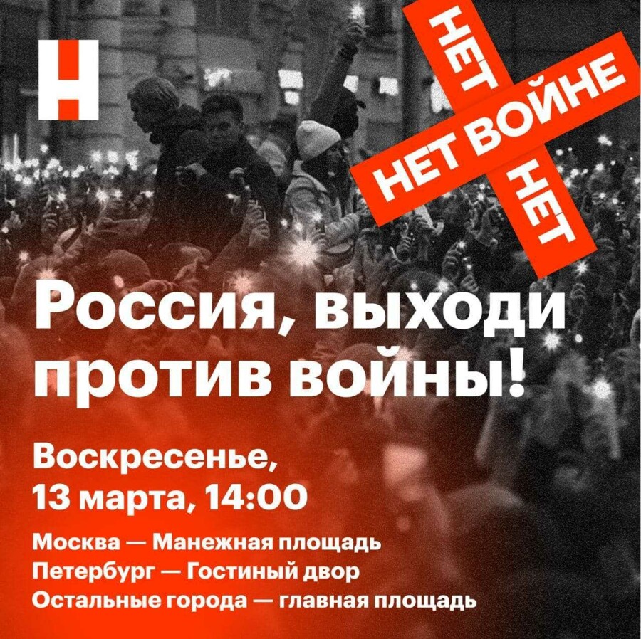Команда Навального анонсировала на сегодня антивоенные протесты по всей России.