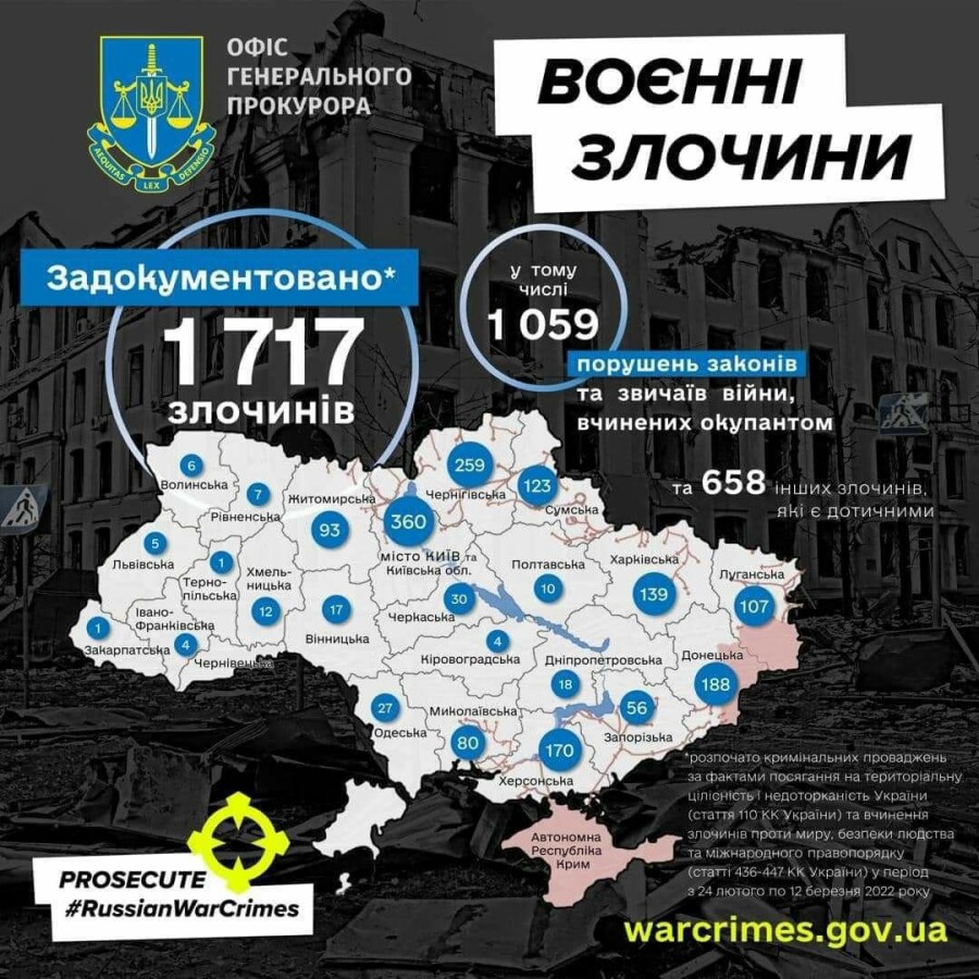 В настоящее время расследуется 1717 уголовных производств по фактам военных преступлений России против Украины, сообщила генеральный прокурор Украины Ирина Венедиктова.