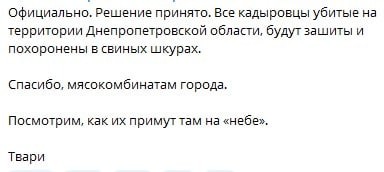 Заммэра Днепра Михаил Лысенко заявил, что кадыровцев, которых убьют в регионе, похоронят в свиных шкурах.