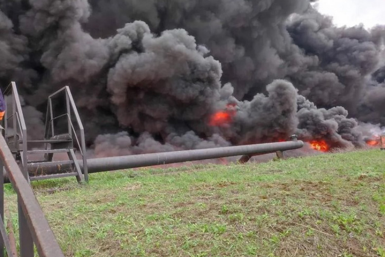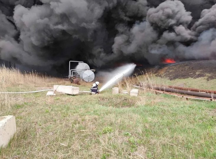 "Рашисты целятся по нем систематически, чтобы истощить ГСЧС. Топлива там нет. Горят остатки нефтешлама", – объяснил он.