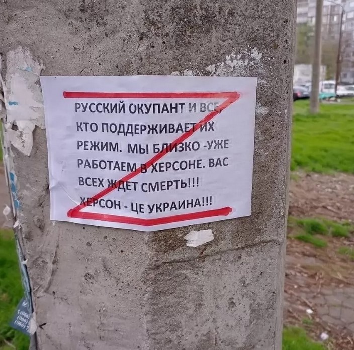 "Русский оккупант и все, кто поддерживает их режим. Мы близко - уже работаем в Херсоне. Вас всех ждет смерть! Херсон — це Украина", — говорится в сообщении.