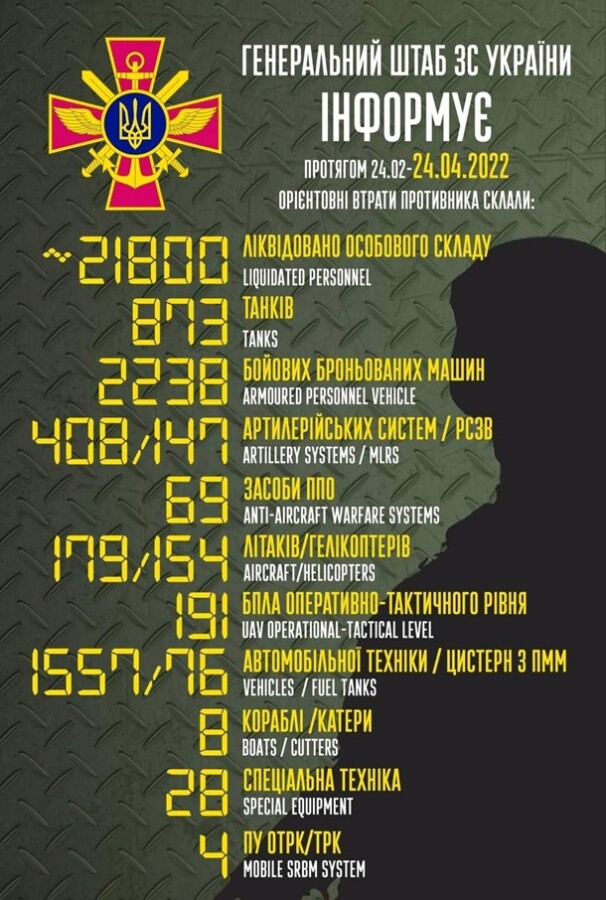 ВІЙНА В Україні Потери российских войск в Украине: Данные на 24 апреля