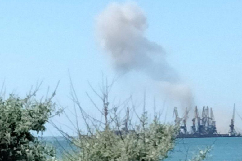 В порту оккупированного Бердянска гремят взрывы. На опубликованных в Сети кадрах можно увидеть, что в небо поднимается столб белого дыма.
