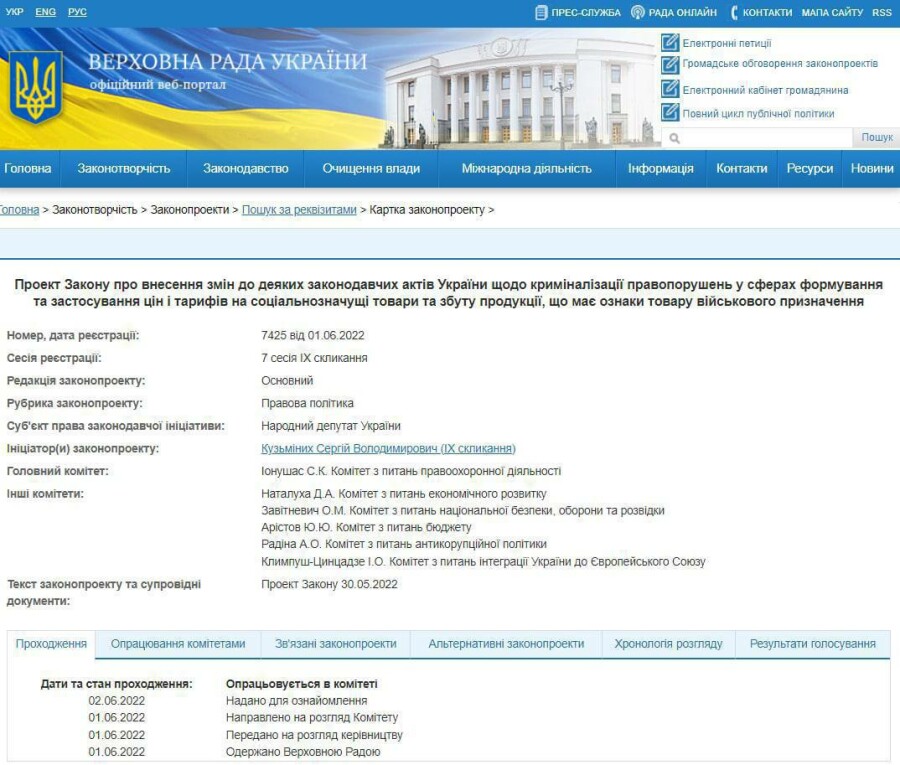 Соответствующий законопроект №7425 зарегистрированный на сайте Верховной Рады.