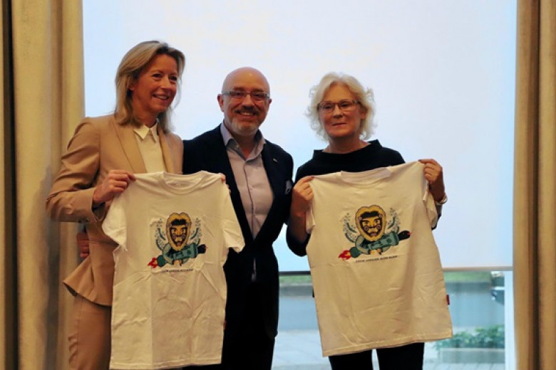 Он проиллюстрировал сообщение фотографией с министрами обороны Дании и Германии, которым презентовал по футболке, на которой изображен лев, держащий установку ПТРК и надпись "From Ukraine with NLAW" - "Из Украины с NLAW" (игра слов: название ПТРК NLAW созвучно слову "Love" - "любовь", - ред.).