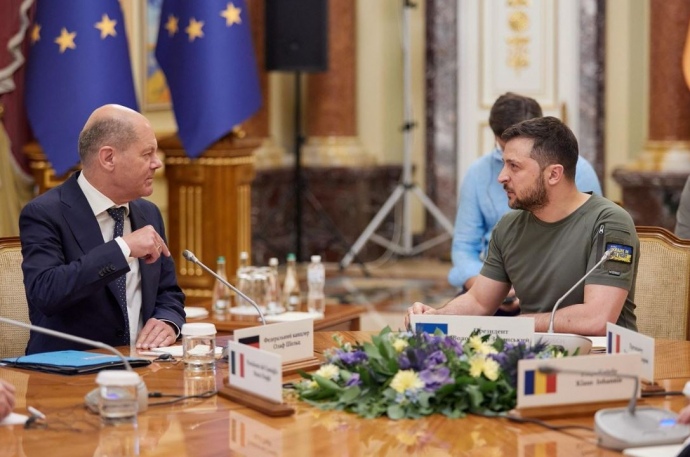 В то же время, Шольц поблагодарил Зеленского за то, что он принял его приглашение принять участие в саммите G7.