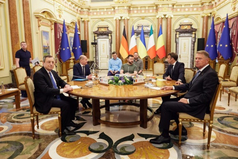 Встреча президента Украины Владимира Зеленского с президентом Франции Эммануэлем Макроном, канцлером Германии Олафом Шольцом, премьер-министром Италии Марио Драги и президентом Румынии Клаусом Иоганнисом завершилась. Об этом сообщил в четверг, 16 июня, глава Офиса президента Андрей Ермак.